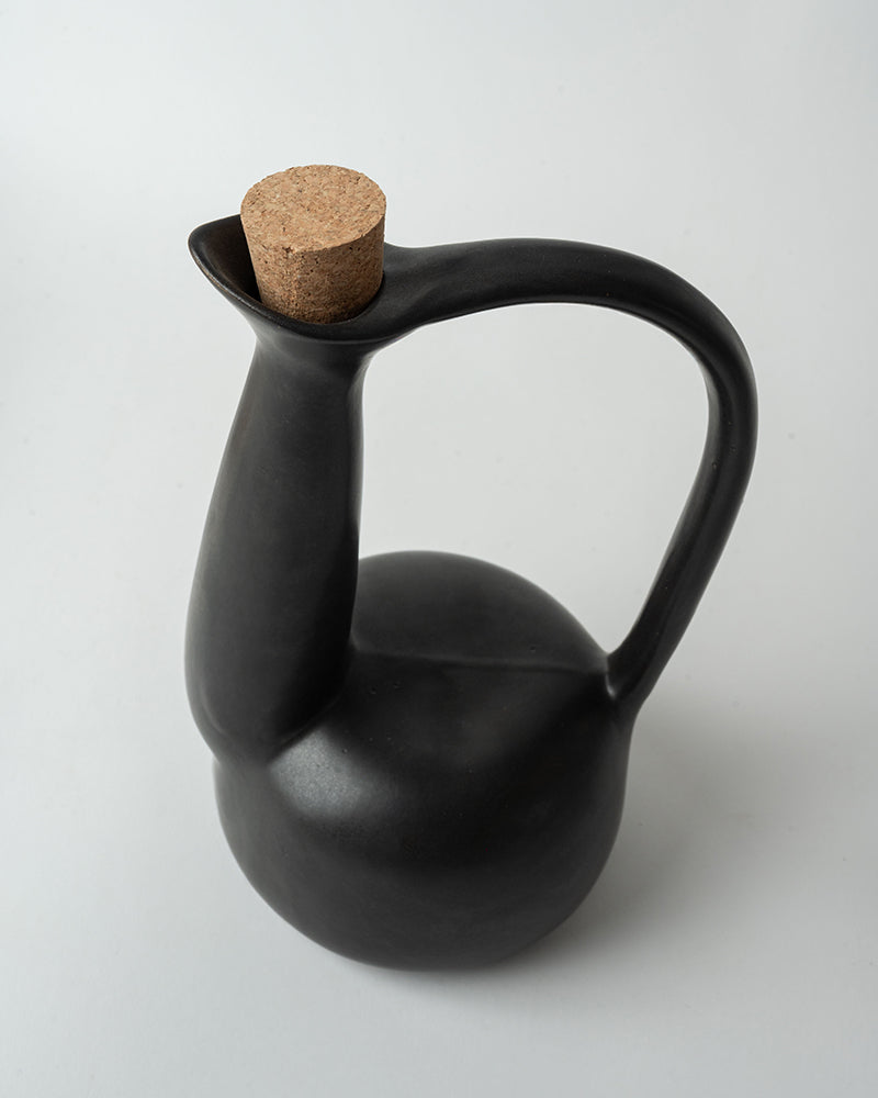 Handmade ceramic oil vessel 'Eleon'. This unique pitcher will add a beautiful touch to any living area. Featuring a long elegant handle for easy to grip everyday use.