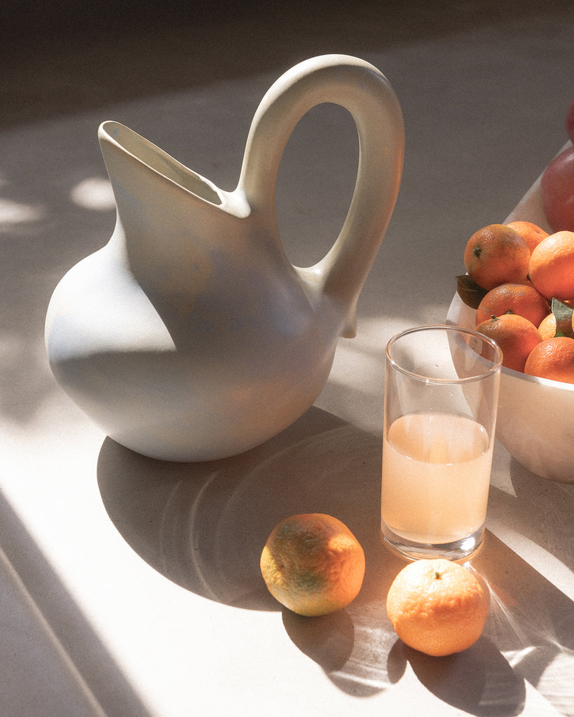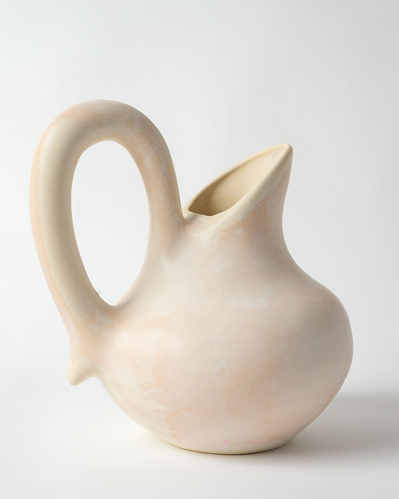 Handmade ceramic pitcher "Idor". Featuring a large spout, an elegant curved handle and subtle geometric engravings on the body. This unique minimalistic pitcher is perfect for serving water or your favorite beverages and adding a statement to your dining table and drinkware experience. Can even be used as a flower pitcher vase.