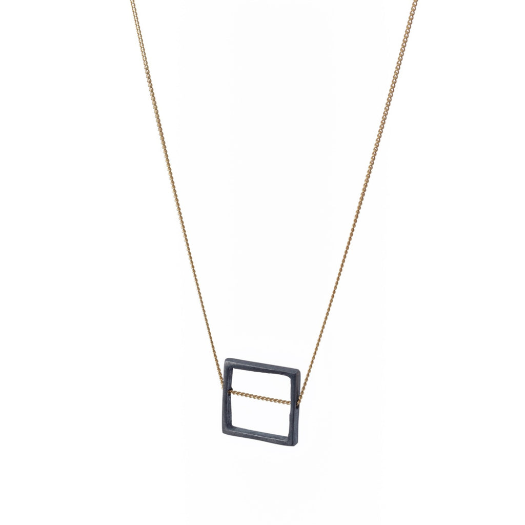This necklace consists of a black plated geometrical element (circle, triangle or square) on a fine silver 925ο gold plated chain.