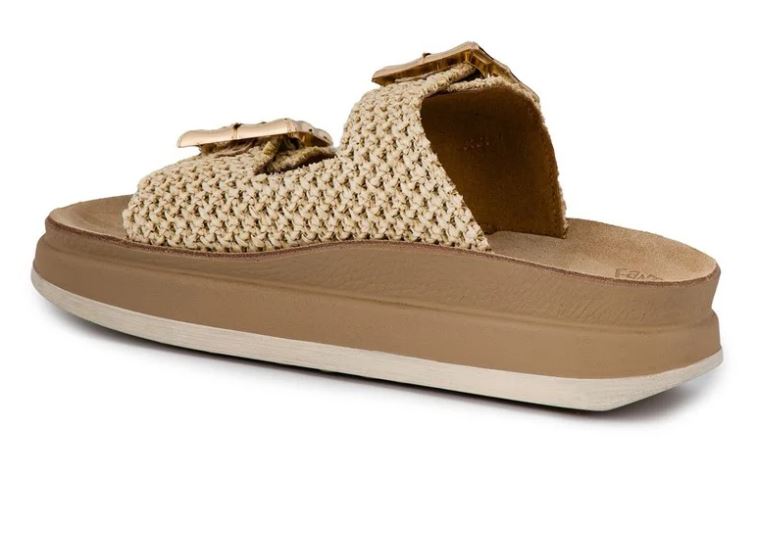 Adjustable straps on the top with buckle closure on this comfortable platform .