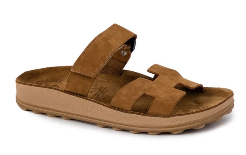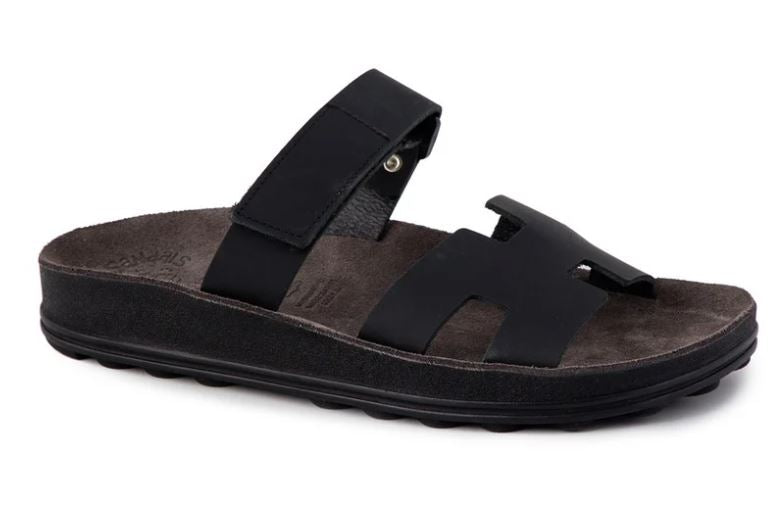 Features a bubble technology outsole for a super comfy and versatile slide sandal topped with slim leather straps & a closure with velcro.