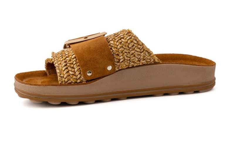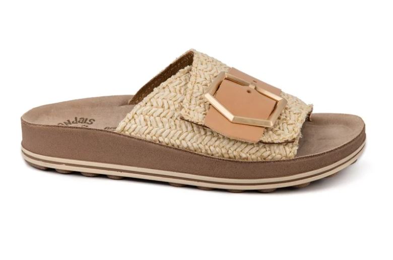 Slide summery sandal with an adjustable closure at the front with a velcro.