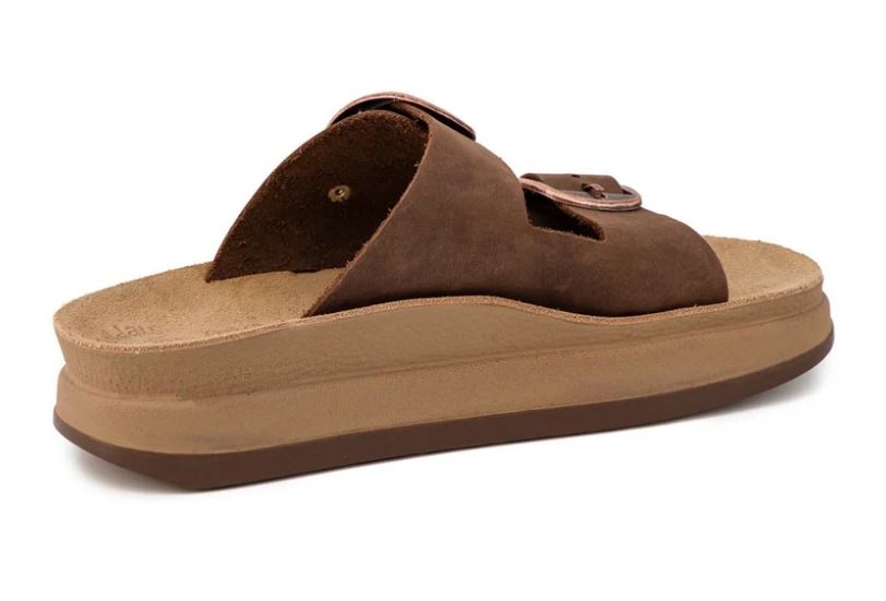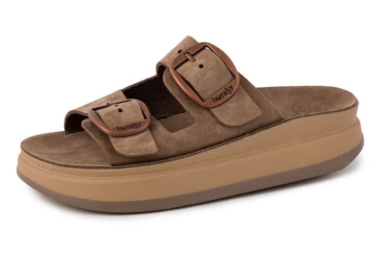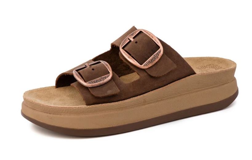 Adjustable straps on the top with buckle closure on this comfortable platform .