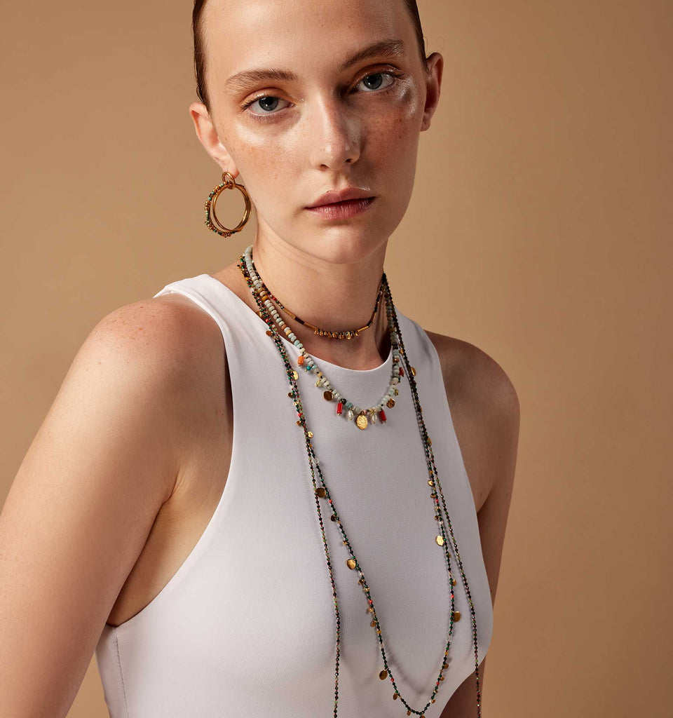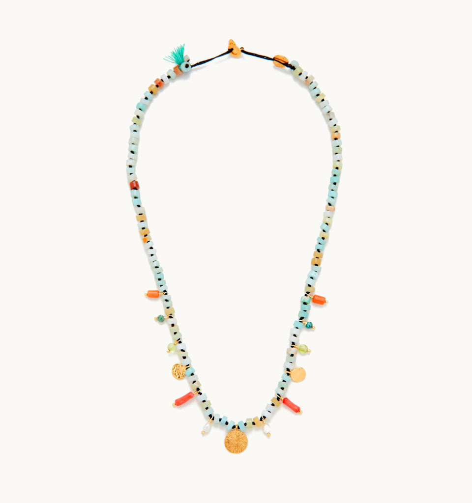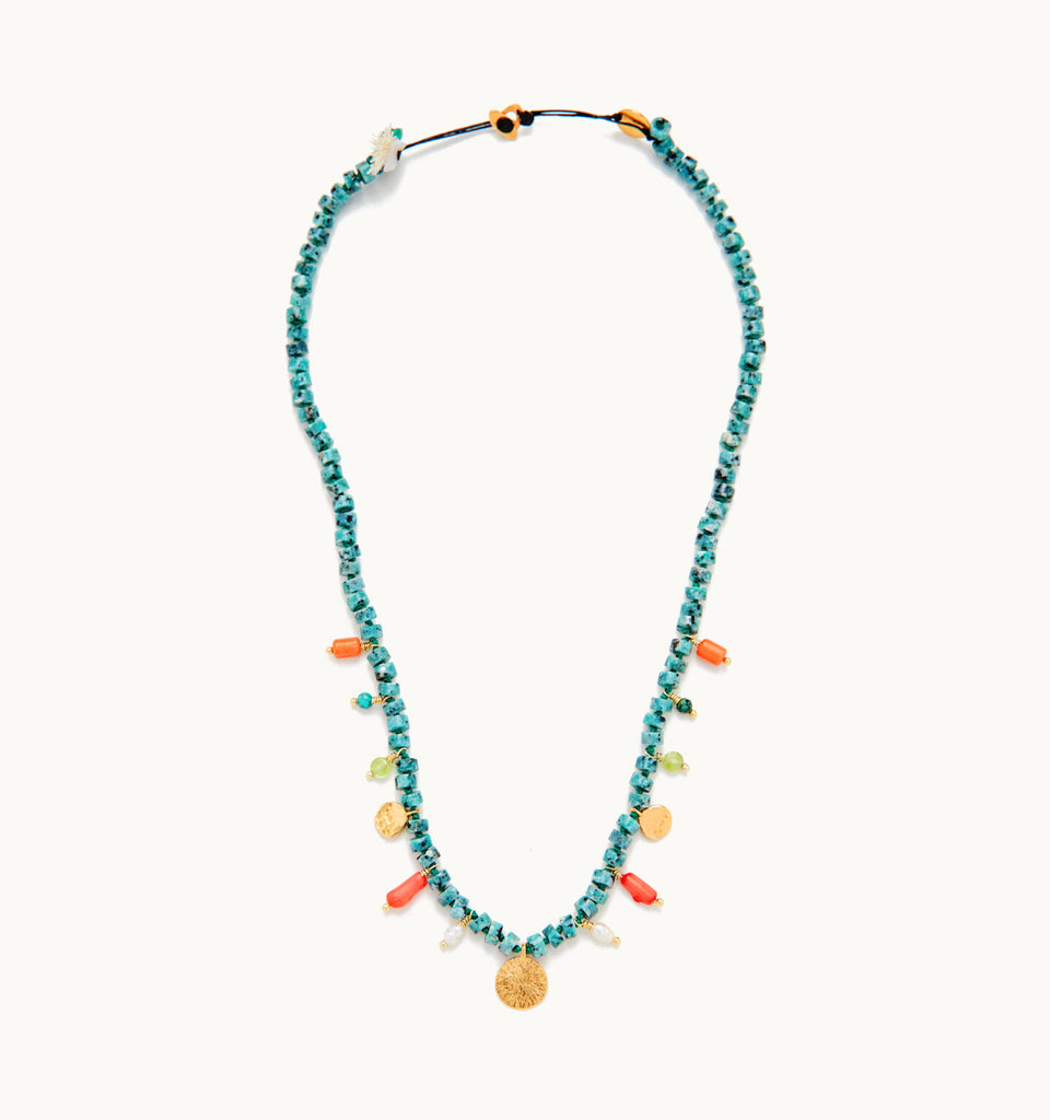 •Cord and different stones (amazonite, corals, jade stones and turquoise jasper)