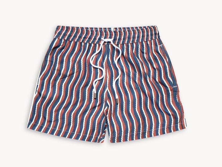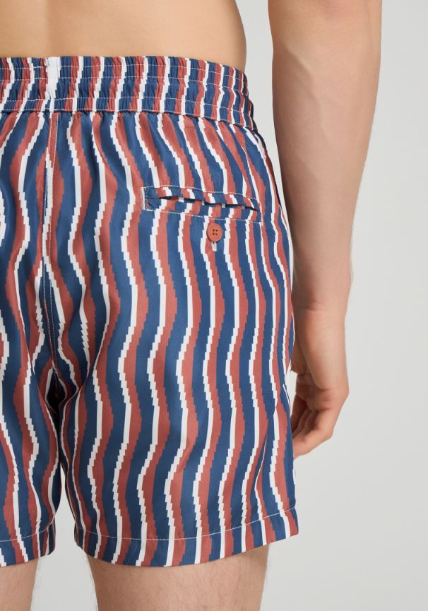 Kyma Swim Shorts are inspired by the gentle flow of the sea, with an abstract wave motif that evokes the rhythm of the water. The word “Kyma,” borrowed from Greek, means “wave,” reflecting the fluid, dynamic design of these swim shorts. Crafted from quick-drying polyester fabric, woven in Italy, they are lightweight and built for durability. Designed with a relaxed, straight fit, they offer all-day comfort, while the elasticized drawstring waistband with branded cord ends ensures a customizable fit. The breathable soft-touch inner mesh lining adds extra support, and the two side pockets and tailored back pocket with a branded button enhance convenience. Combining timeless style with modern functionality, the Kyma Swim Shorts are the ideal choice for effortless days by the sea.